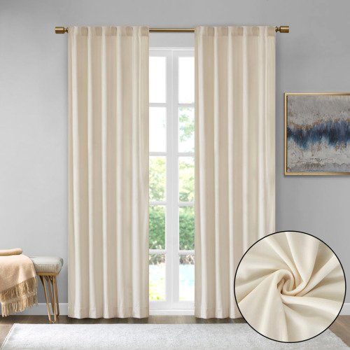 - Room darkening solid velvet rod pocket/back tab window curtain pair in 3 sizes